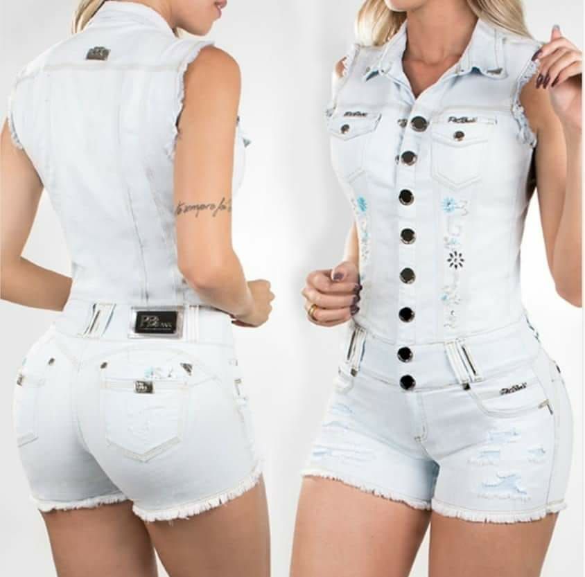 Macaquinho pit bull jeans último lançamento a foto é idêntica ao produto lindo, tem levanta bumbum.tem bojo nos seios. produto de excelente qualidade, não vendemos réplicas, nossos produtos são revisados antes do envio.